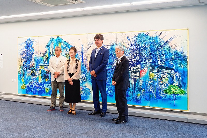 この作品は、当社の創業100周年を記念して鳥羽先生に制作を依頼したものです。鳥羽先生はベトナムを題材にした作品を多く生み出しており、日越友好関係増進に寄与したとして外務大臣表彰を受賞されています。
